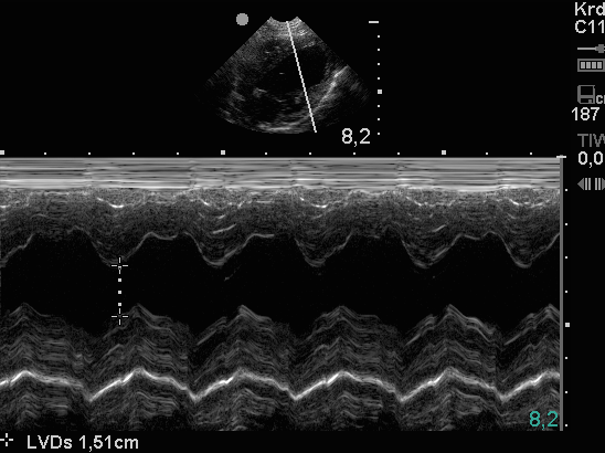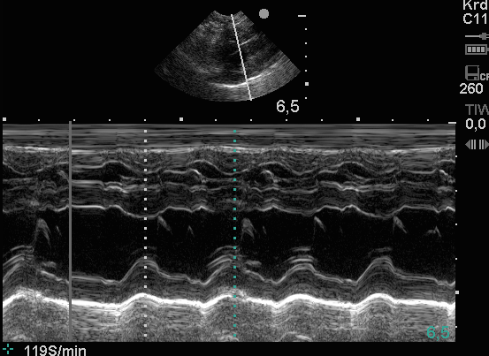 Die oberen beiden US-Bilder zeigen eine Technik, die es dem Untersucher ermöglicht, die Effizienz der Herzleistung darzustellen.